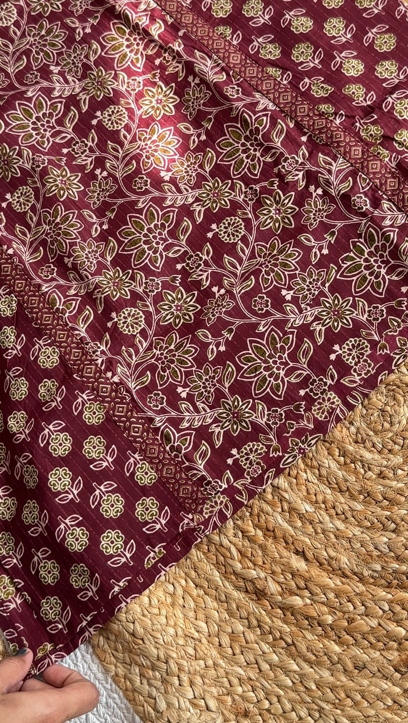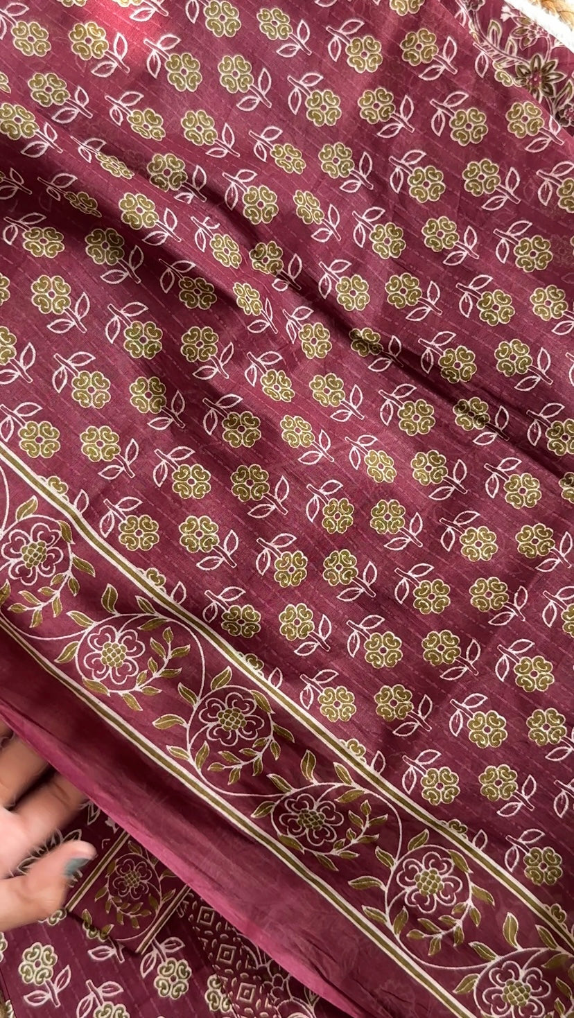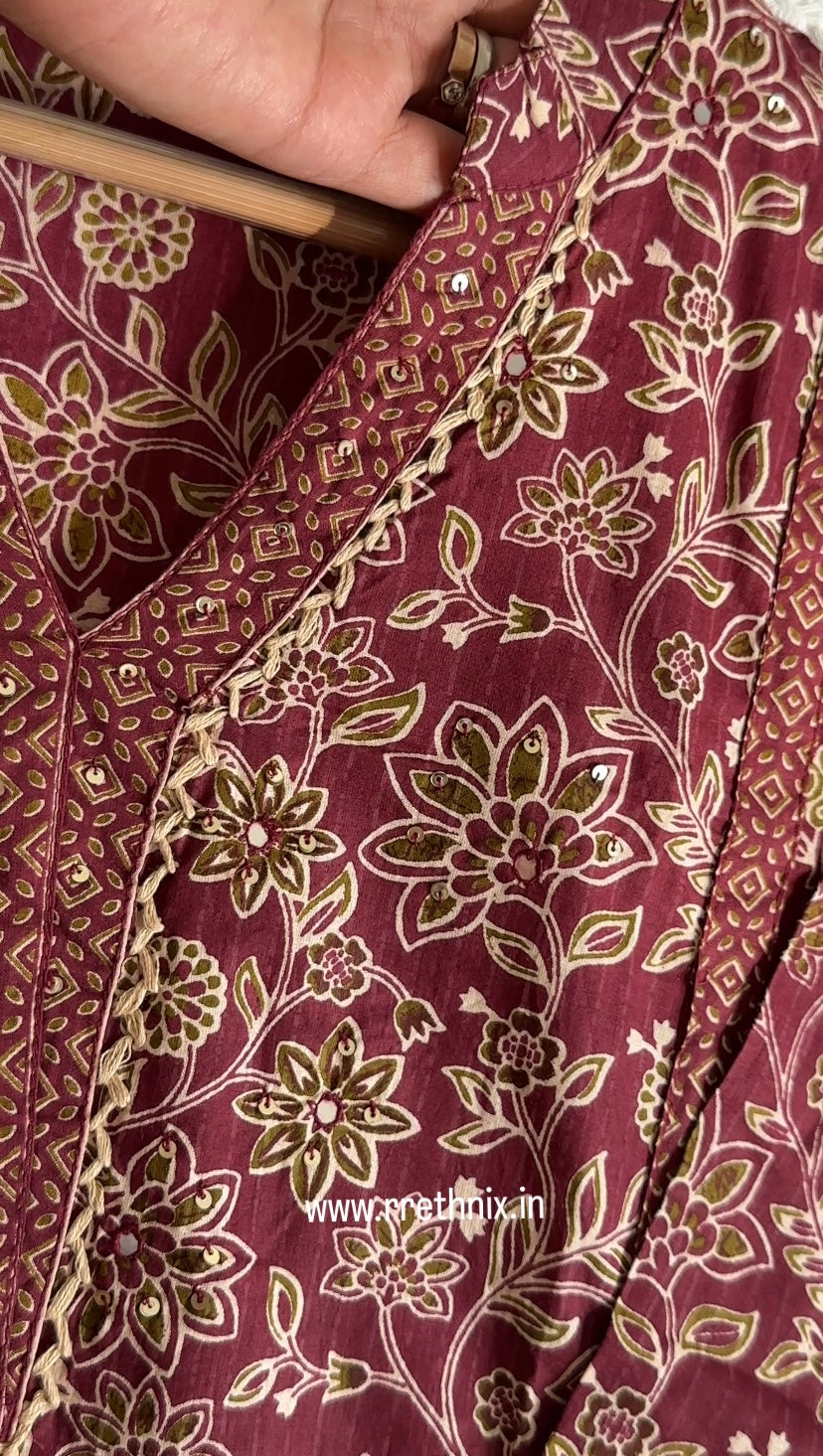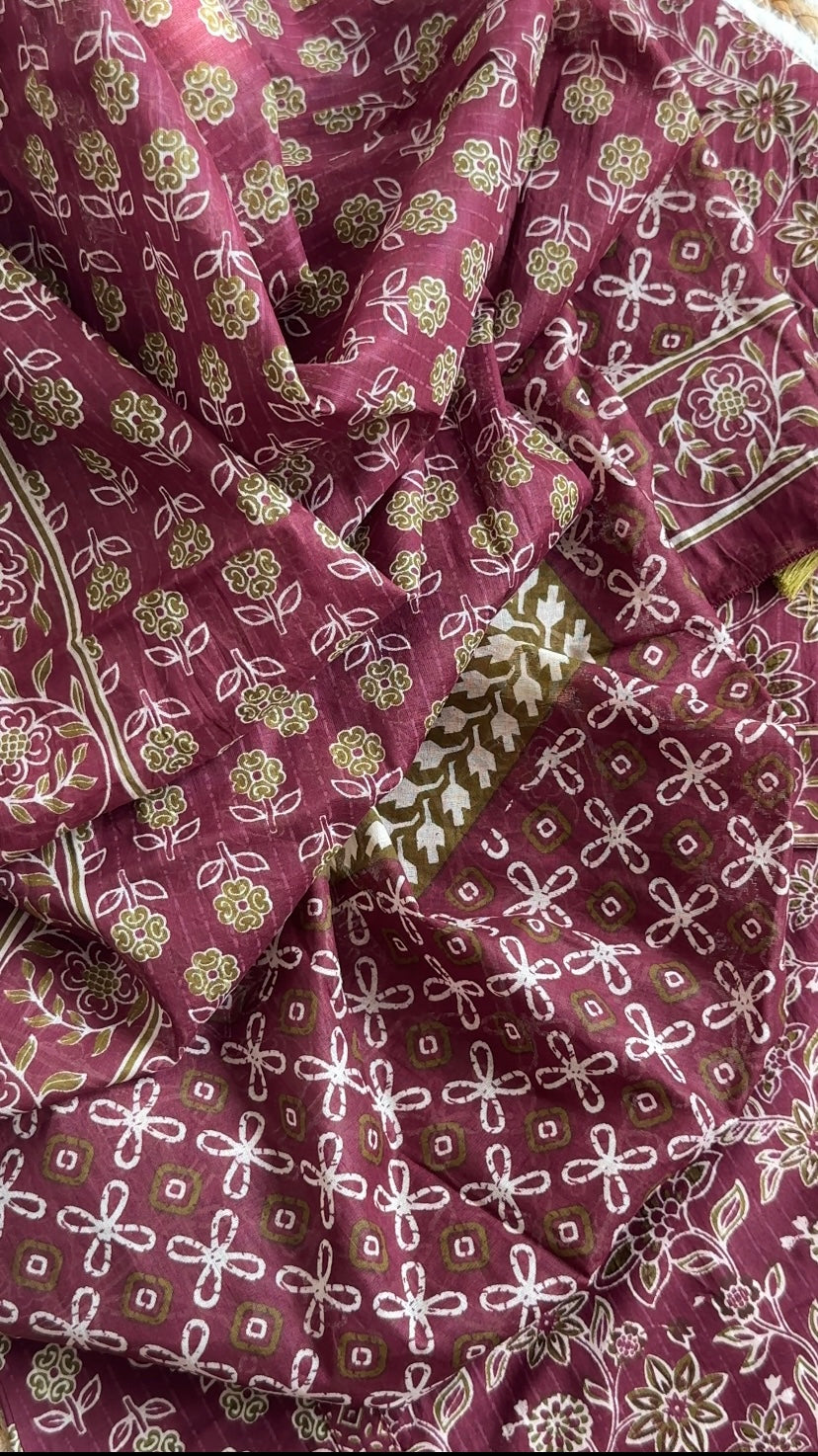 Maroon Hand Block Print Cotton Suit Set with Dupatta &Pant,Casual Wear