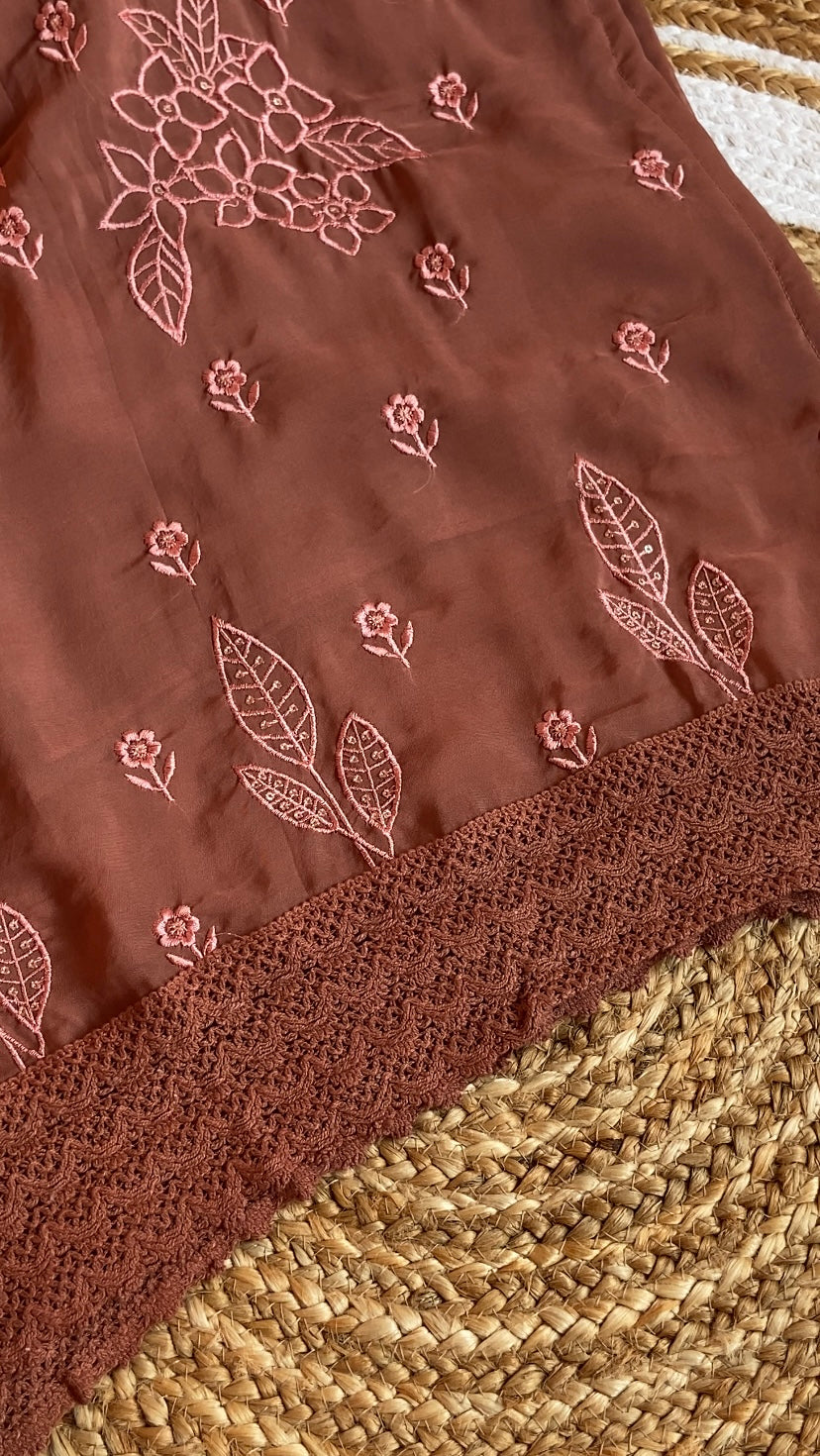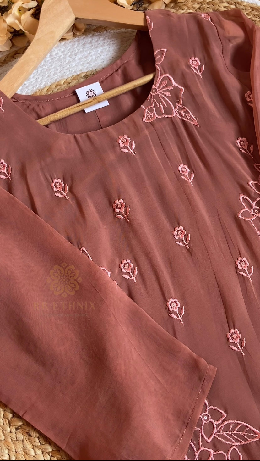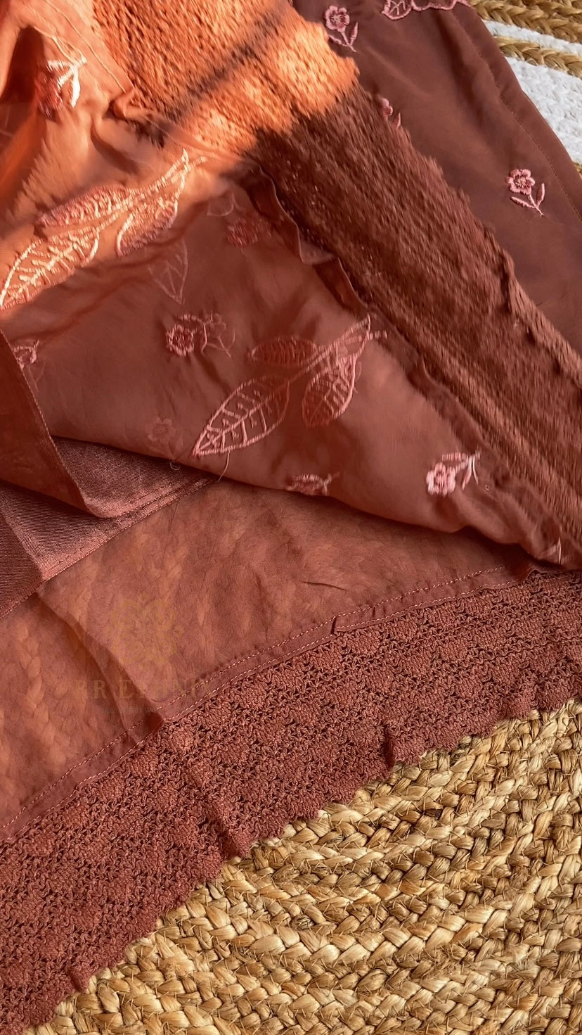 Rustic Terracotta Brown Organza Embroidered Suit Set