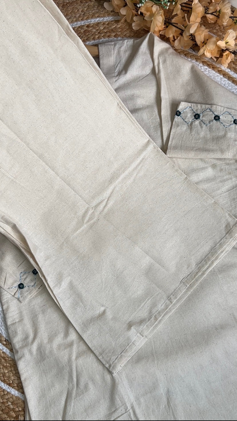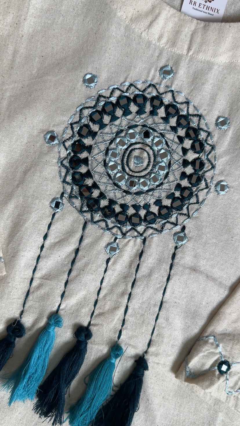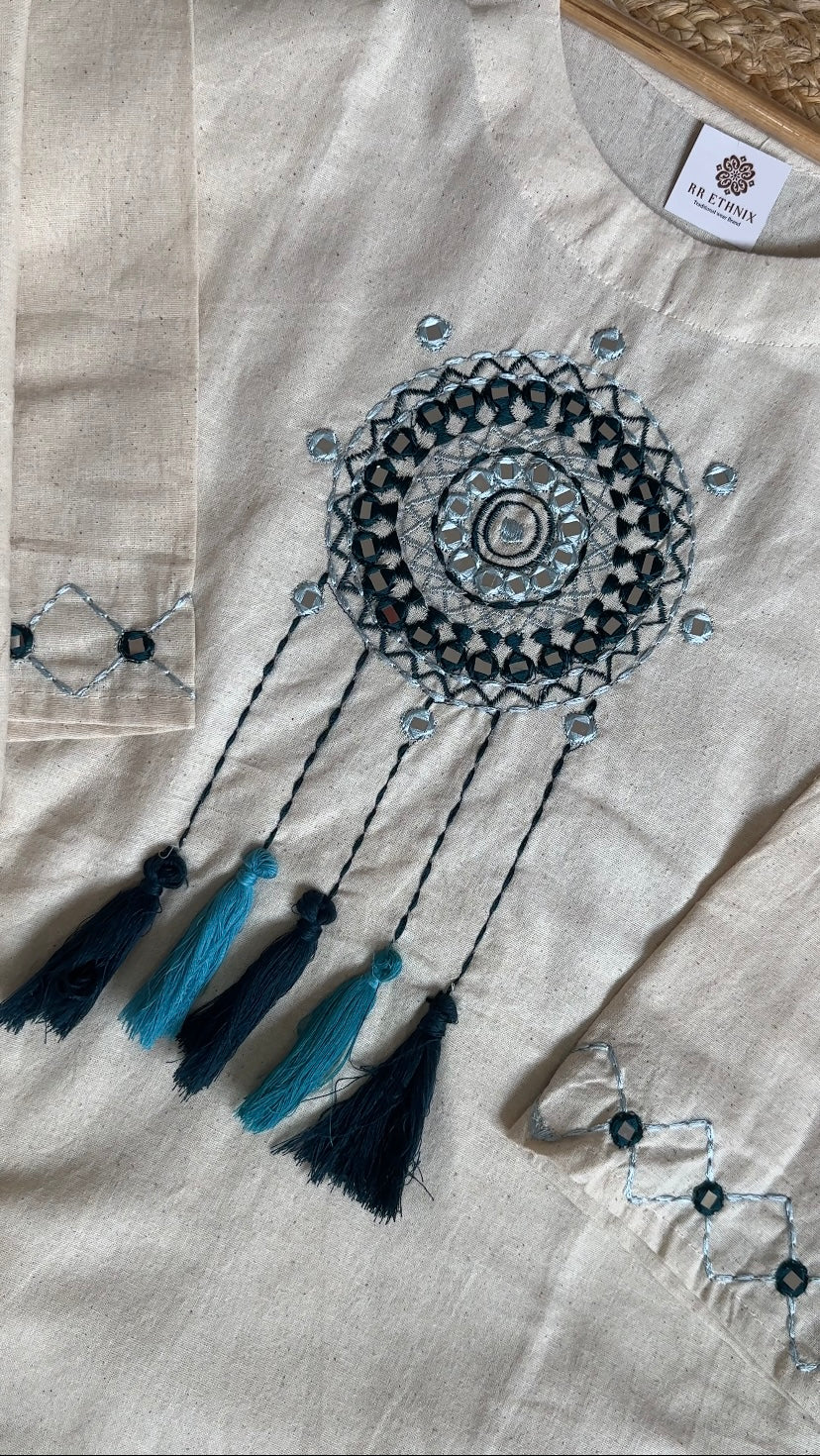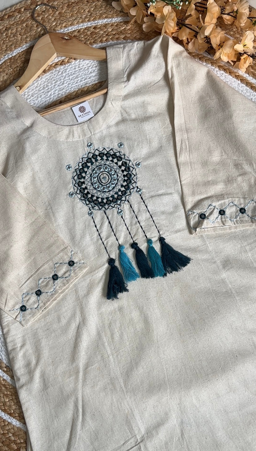 Handcrafted Khadi Co-ord Set with Dreamcatcher Embroidery | Sustainable Cotton Ethnic Wear for Women