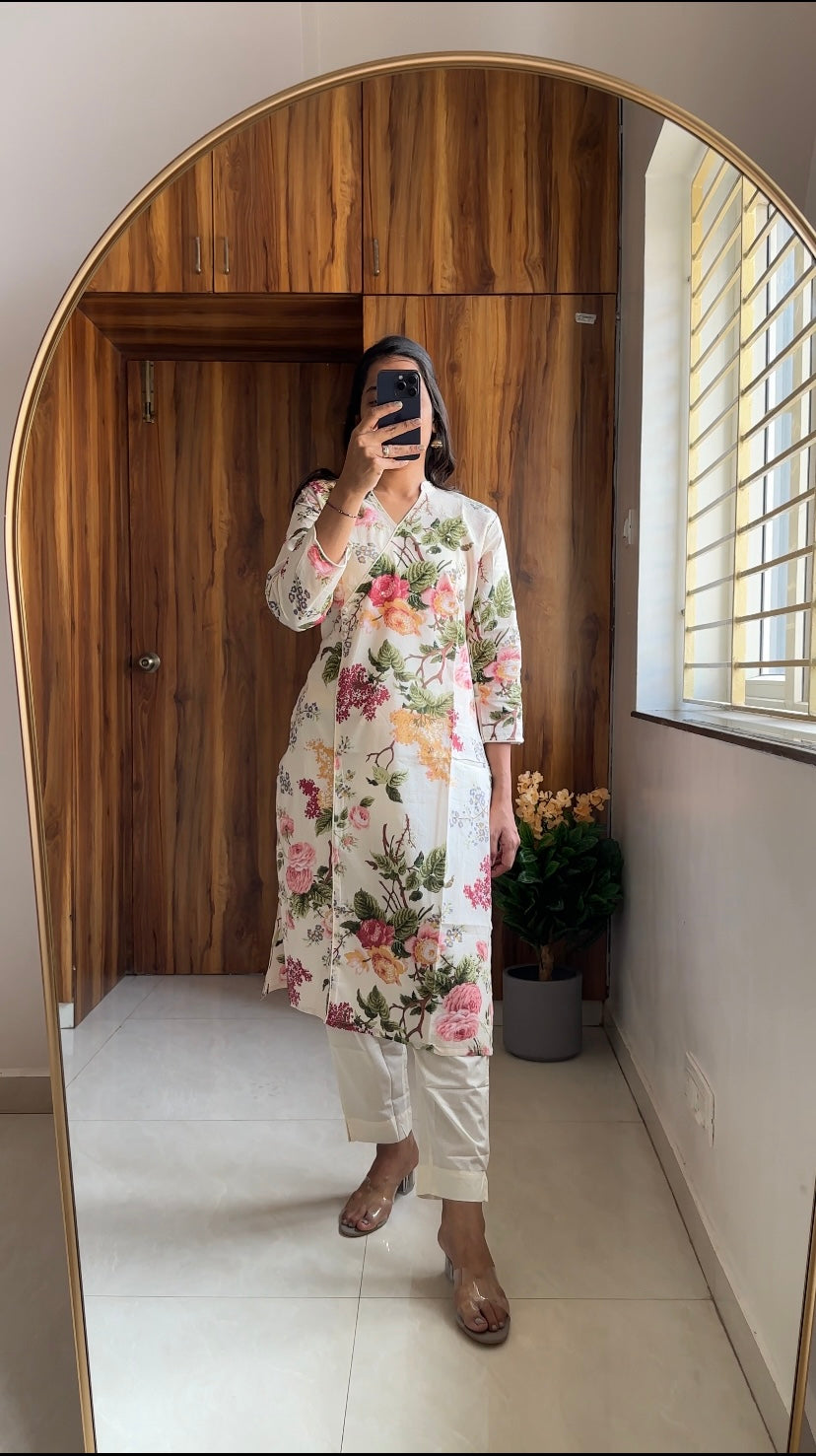 Angrakha Kurti,Floral Kurti, Cotton kurti,Cotton kurti,kurta pant2pc